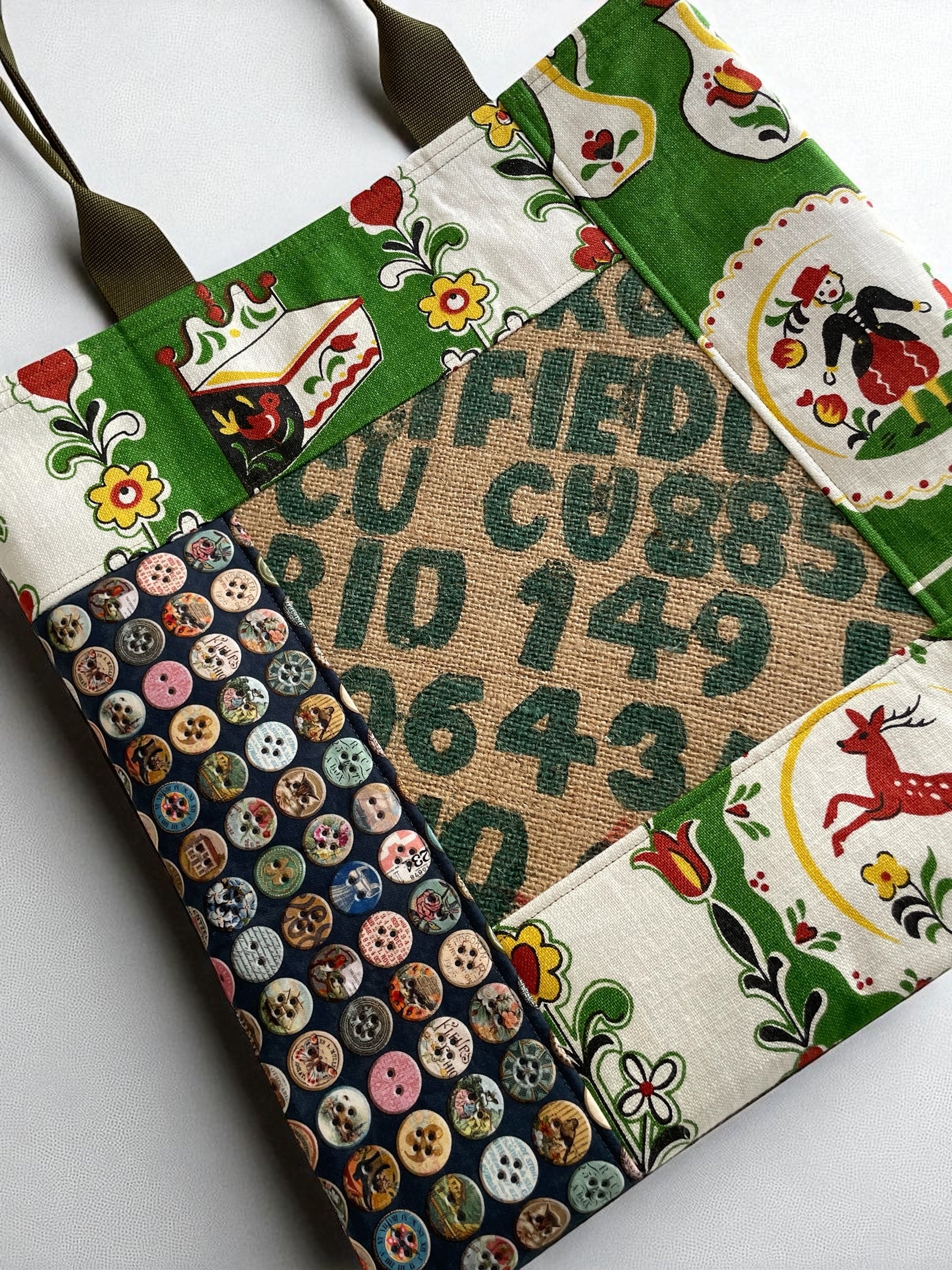 アメリカ生活の中で出会った古い生地を使用しています。